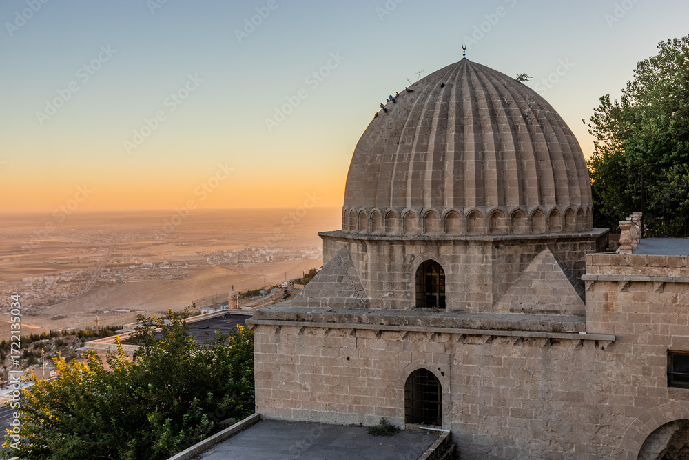 Huge mining truck on truck shop platform after receiving maintenance and ready to transport minerals