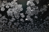 Ice crystals freezing on a black background, abstract winter photo surface