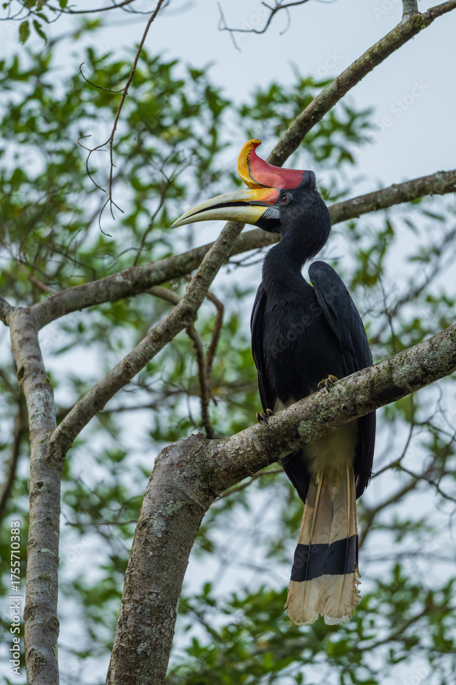 Malay Rhinoceros Hornbill Resting on a Branch in Tropical Habitat
