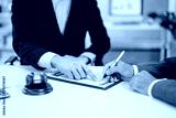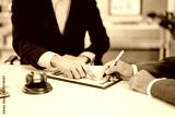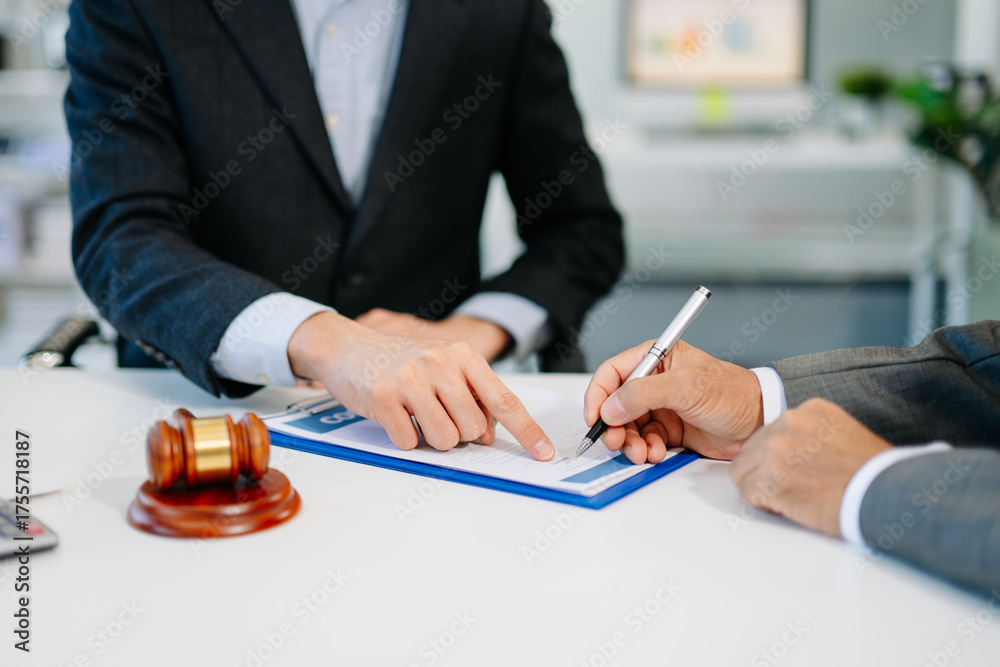 business people and lawyers discussing contract papers sitting at the table. Concepts of law, advice, legal services.