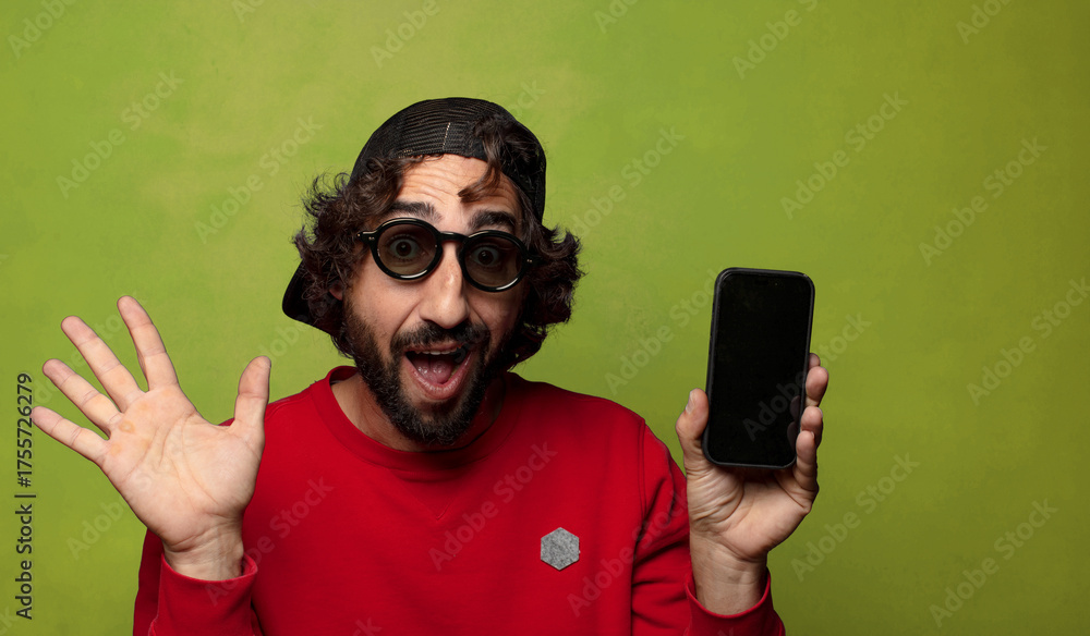 young adult bearded man with a smart phone