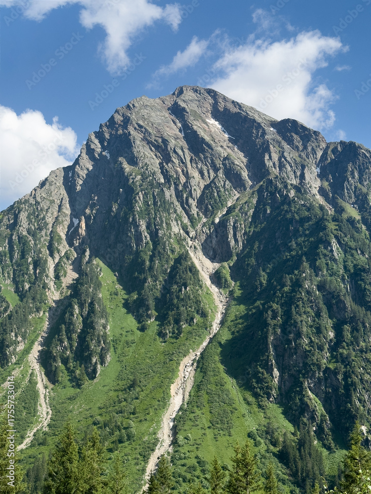 Mountain peak standing tall with green slopes