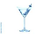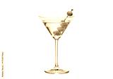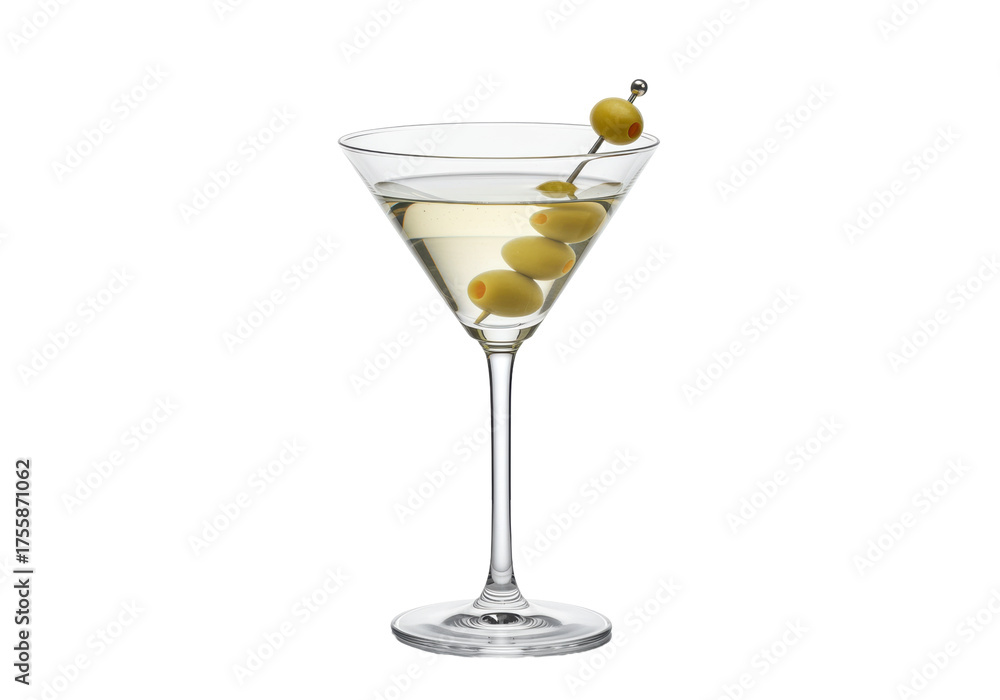 Isolated Martini cocktail with olives, classic beverage in a stemmed glass, bar drink