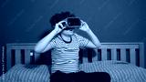 Little boy Immersed in cyberspace, metaverse, learning in virtual reality. Kid playing games. Child learning using virtual reality headset. Education child in virtual reality glasses. laptop and globe