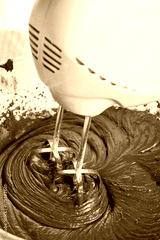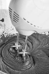Mixing chocolate cream ganache with hand mixer