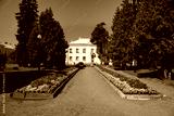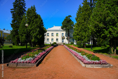 Regal neoclassic-style apartment buildings in Sillamäe, a former Soviet closed city located on the coast of the Baltic Sea in Estonia