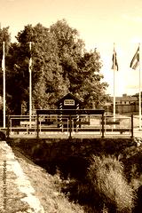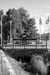 Traditional black and white wooden border guard house marking the open border between Valga, Estonia, and Valka, Latvia. A landmark of the Schengen Area and European Union in the Baltic States.