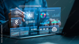 Businessman analyzes data using AI technology to work with tools, AI seo, search, Chat bot, smart robot technology and artificial intelligence concept. AI agent and workflow automation