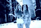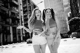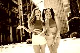 Fun sunny city duo embrace bright fashion vibes two stylish friends explore urban streets with smiles and energy on a sunny day in a modern traveler lifestyle moment