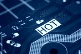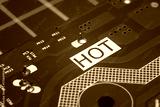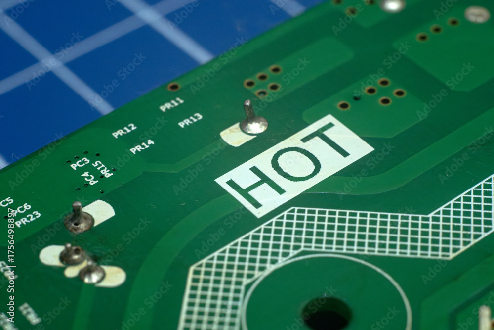 A printed circuit board labeled hot.Heating of the electronic board.Soldering.