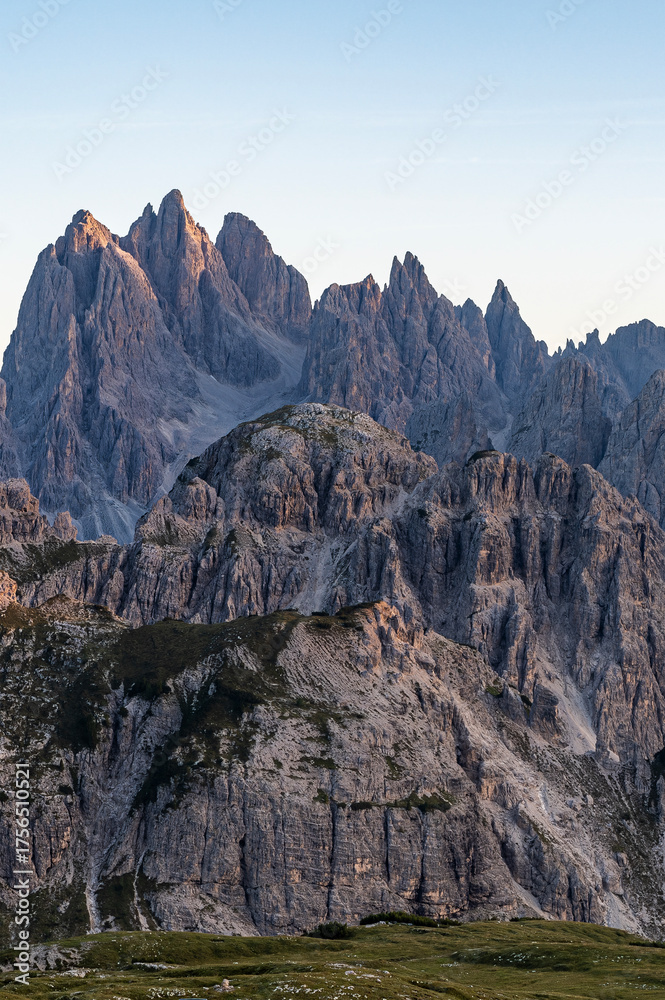 The mountain peaks of Ciadin del deserto in the Dolomites in Italy