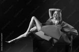 Woman in red dress on giant gift box with bow for Christmas retail and holiday promotions