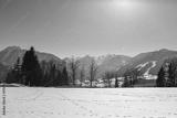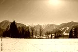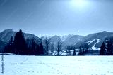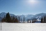 Winter landscape with snow-covered mountains near Schladming, Austria under clear blue sky