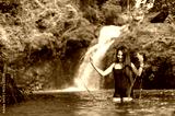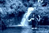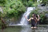 Women Enjoying Nature and Splashing Water Near Beautiful Waterfall