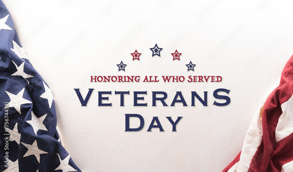 Happy Veterans Day concept. American flags and the text against white background. November 11.