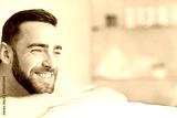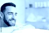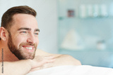 Smiling man enjoying anti-stress procedure while relaxing in spa salon