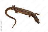 Earless Monitor (Lanthanotus borneensis) closeup on isolated background, Brown lizard native to the Southeast Asian island of Borneo
