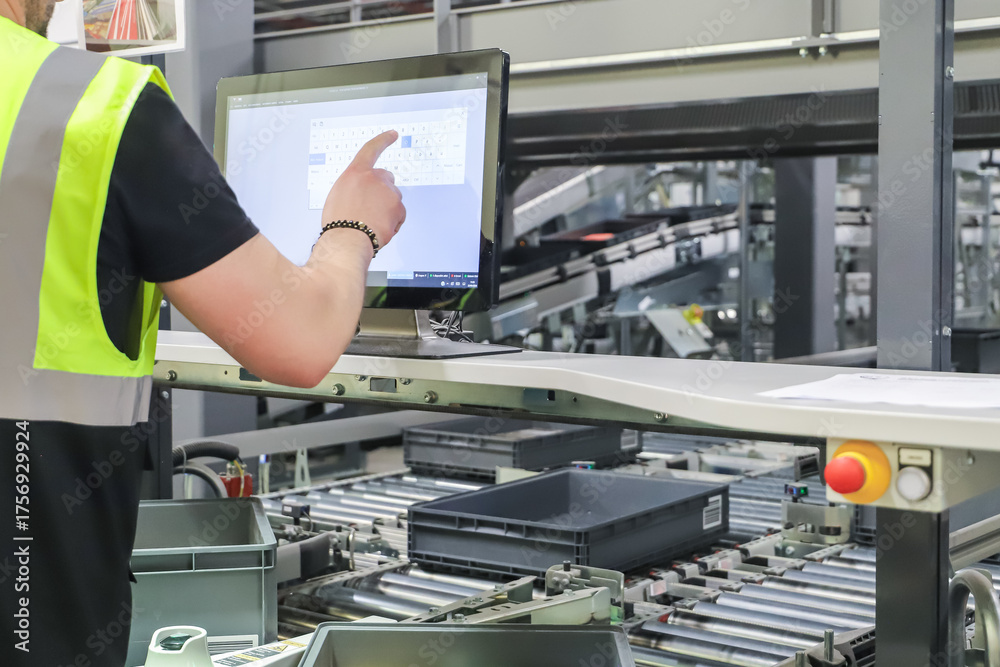 picking. packing line in a logistics warehouse. conveyor belt in a modern production line