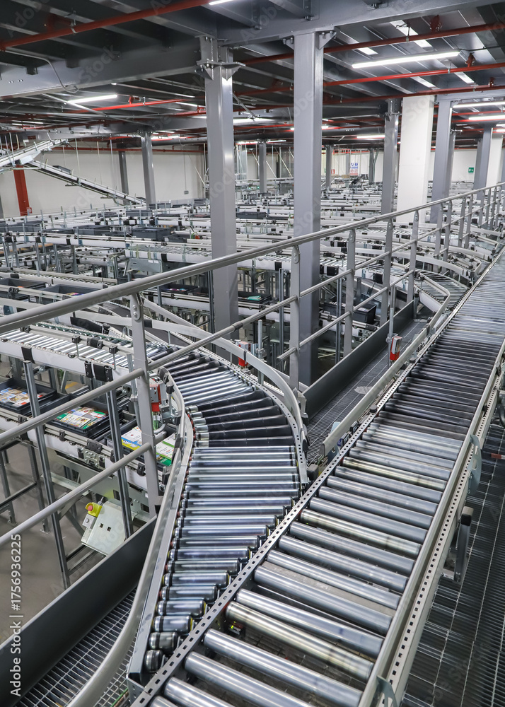 packing line in a logistics warehouse. conveyor belt in a modern production line