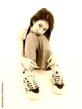 posing wearing black sleeveless top blue jeans on white background in studio modern street outfit fashion portrait casual attitude trendy style.