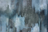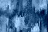 Close up photograph of a hand painted, grungy, abstract painting on paper. Shades of blue, grey, and white. Large contemporary, textured background.