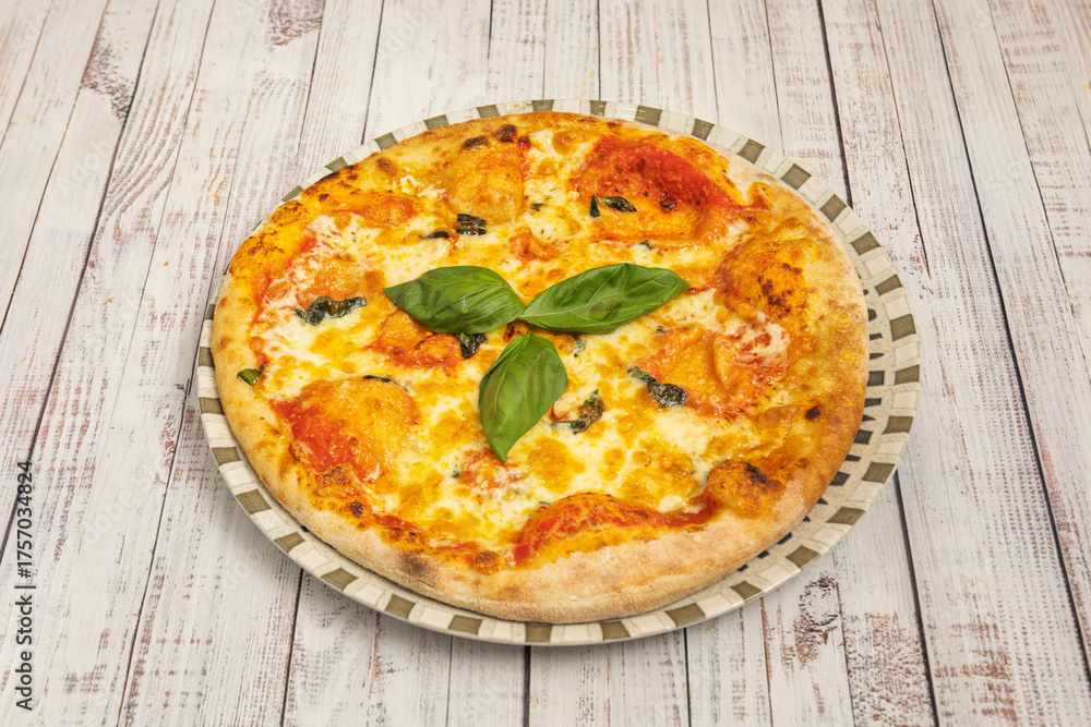 Spring pizza with wild asparagus, fresh peas, sliced zucchini, and fresh mint on a crust