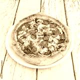 Smoked pizza with fresh dill, capers, chopped chives, and baked sour cream
