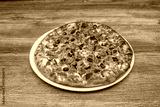 Pancetta pizza with crispy smoked pancetta, roasted onions, egg, and freshly ground black pepper
