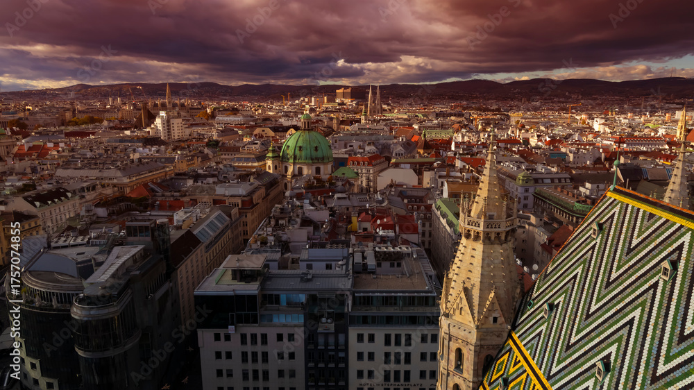 The landscape city view in vienna skyline with St. Stephen's Cathedral, Vienna, Austria