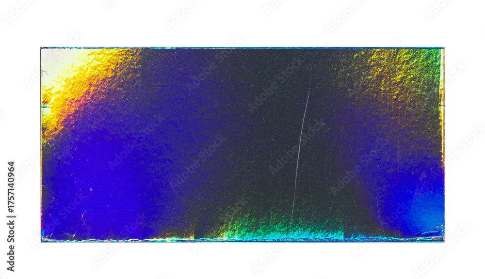 Vintage rectangle holographic shiny sticker. Original foil hologram label seal. Realistic photography, png isolated on transparent background.