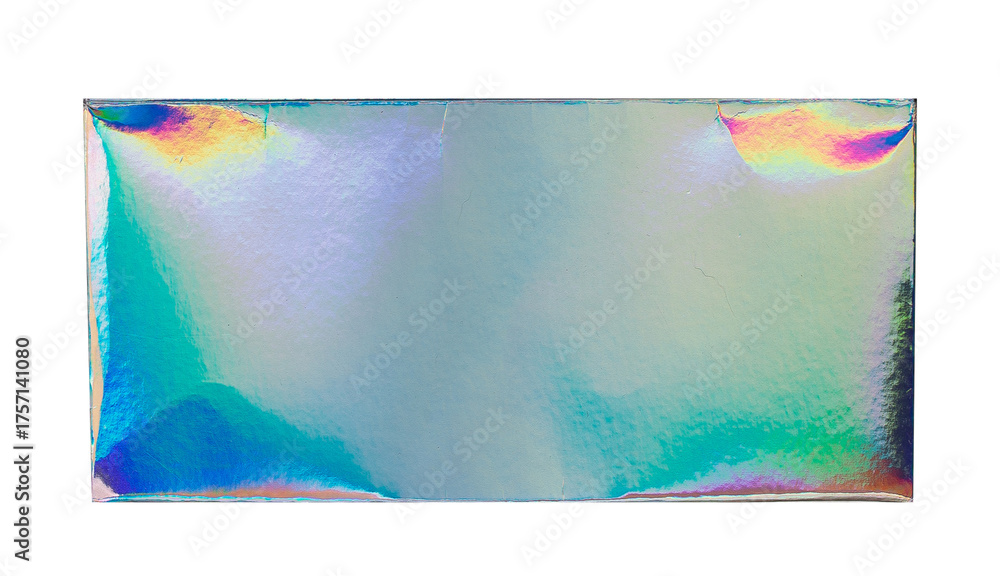 Vintage rectangle holographic shiny sticker. Original foil hologram label seal. Realistic photography, png isolated on transparent background.