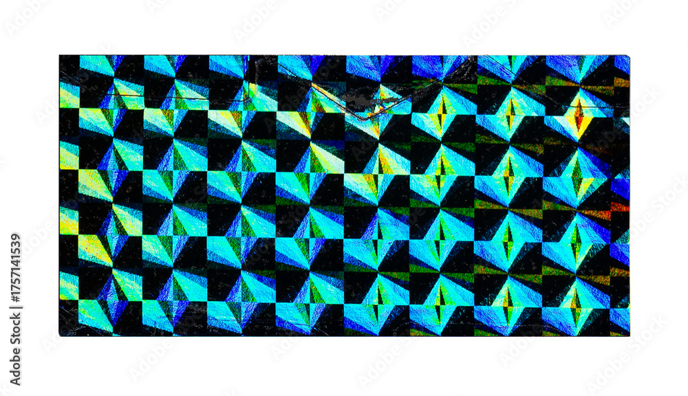 Vintage rectangle holographic shiny sticker. Original foil hologram label seal. Realistic photography, png isolated on transparent background.