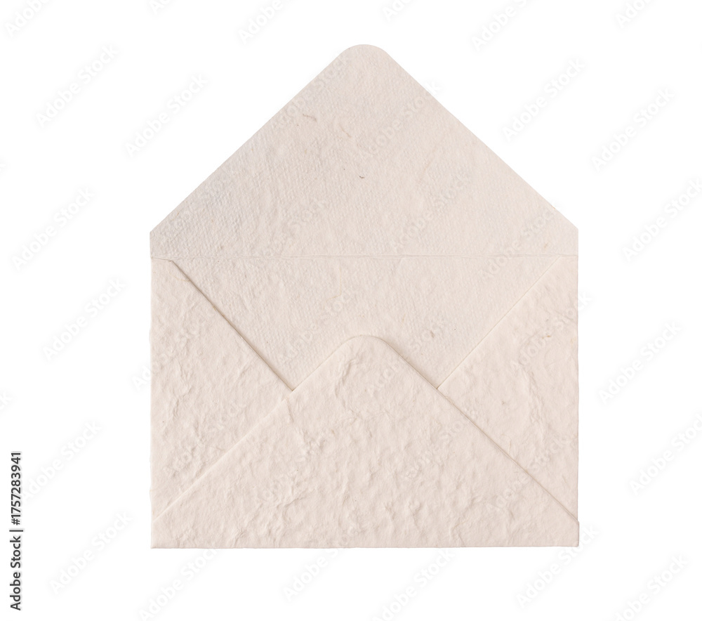 Open empty textured paper envelope mock up on a transparent background, ready for your communication message