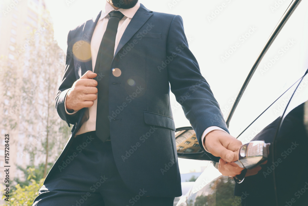 Man in suit opening door of car