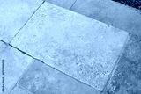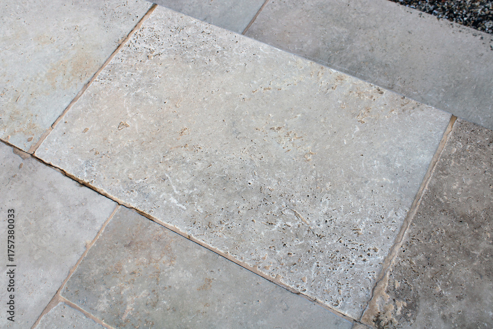 Dallage en pierre naturelle, escalier de terrasse en travertin