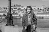 Young woman traveling in Prague, Czech Republic, city view and lifestyle moment