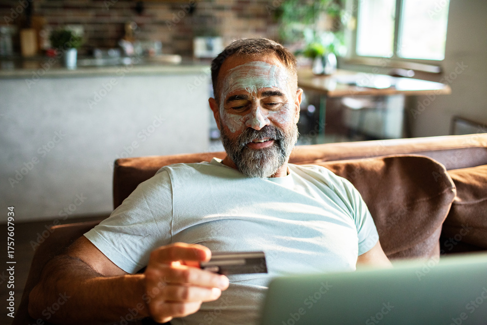 Mature man shopping online at home