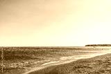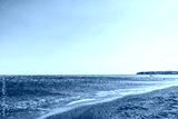 Waves of Aegean Sea blown back by strong mountain wind creating unique offshore water movement. Greece.