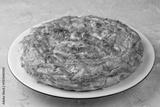 Spanish omelette with potatoes, typical spanish cuisine on gray concrete floor. Tortilla Espanola. Turkish name; Yumurtali patates