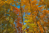 A Stunning Autumn Landscape Featuring Vibrant Trees, Bright Colors, and a Clear Blue Sky