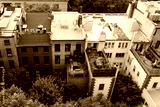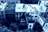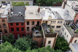 Top view of apartment buildings in NYC neighborhood of Brooklyn Heights