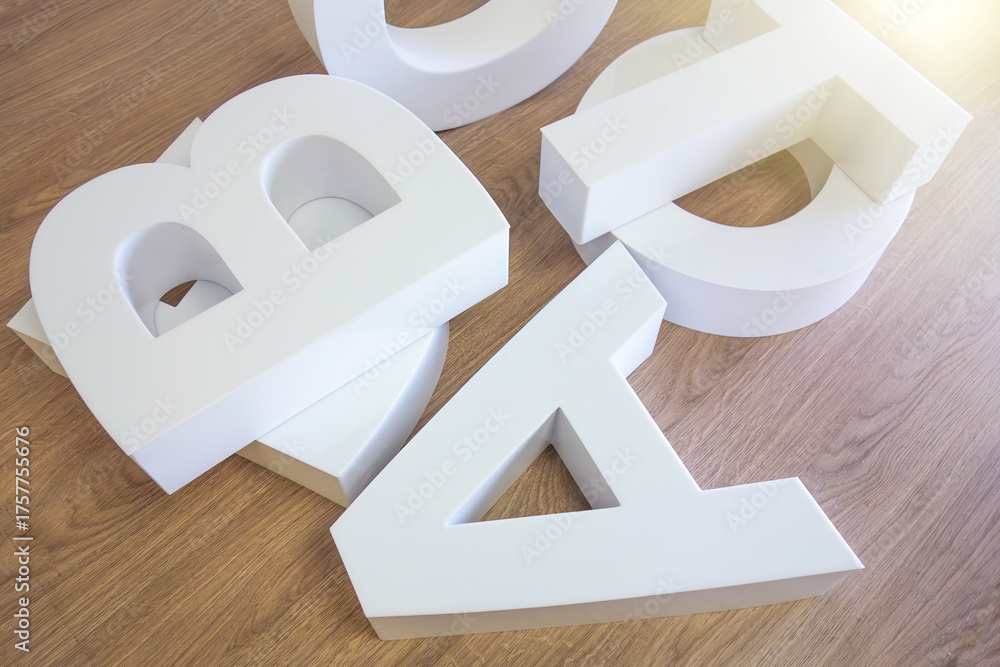Unlit white letters made of plastic.Make a large-scale logo.Production of advertising.