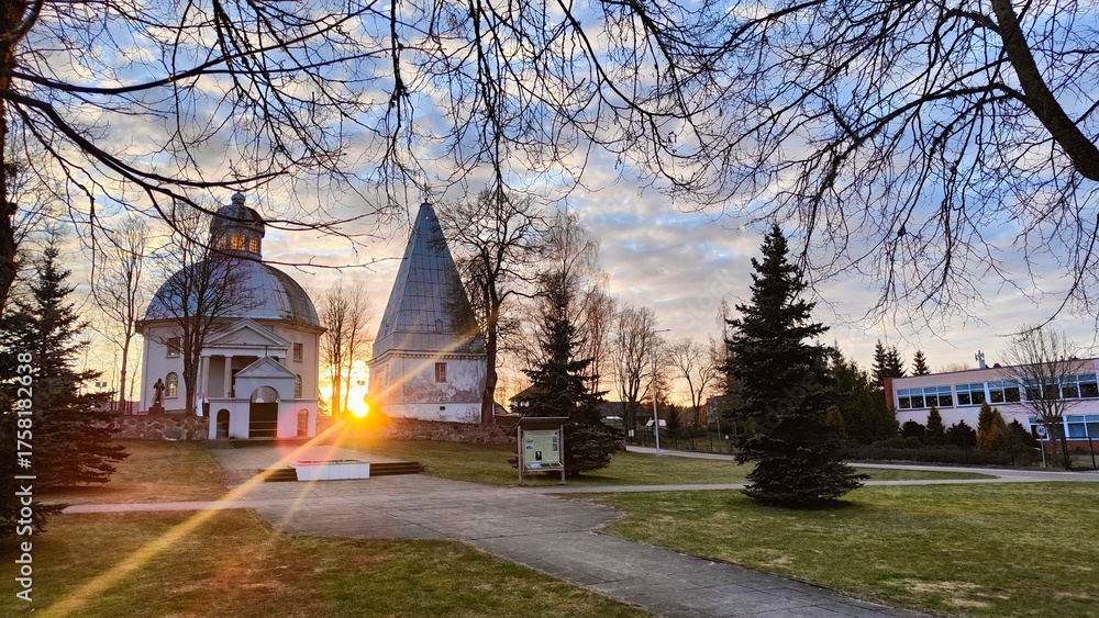 Sunset next to church