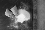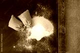 Wheat flour, carob flour, rice flour prepared on the kitchen counter.