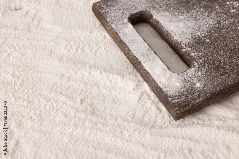 Wheat flour, carob flour, rice flour prepared on the kitchen counter.