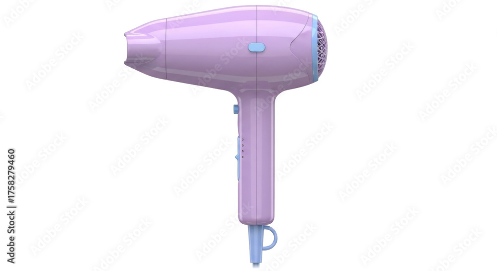 Isolated beauty tool product shot shows a pastel lavender hair dryer for personal care appliance