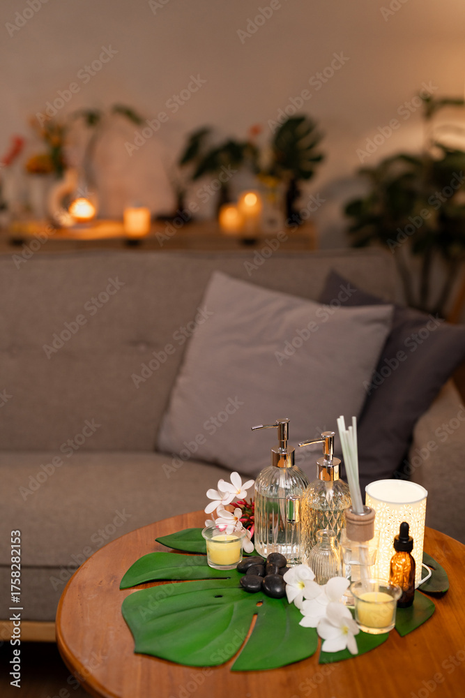 Spa wellness relaxation aromatherapy home decor essential oils tranquil luxurious selfcare setting for peaceful mind body rejuvenation
