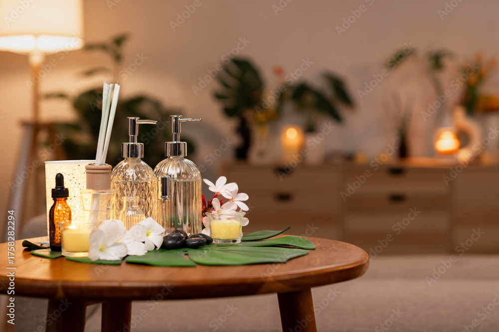 Serene Spa Essentials Home Aromatherapy Wellness Products Relaxation Experience Natural Beauty Self Care Tranquil Atmosphere Therapeutic Environment