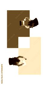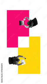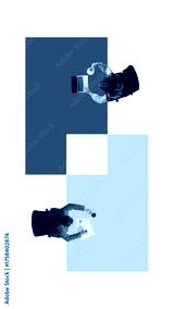Creative digital artwork. Business partners working remotely across bright connected blocks of collaboration. Concept of teamwork, technology integration, and digital partnership