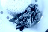 White rice with fried tofu. Soy cheese. Chinese cuisine. Asian food. Food concept.